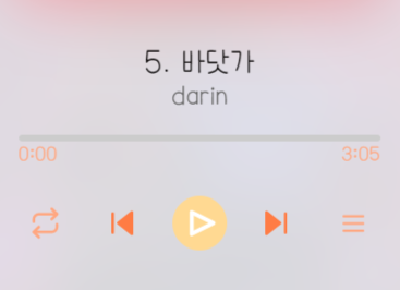 또한 노래에 맞는 시간을 넣어주고 제목과 가수의 싱크를 맞춰주며 노래 진행 바도 설정해주고 바를 클릭하면 클릭한 부분의 노래로 이동할 수 있도록 작업해 주었습니다.